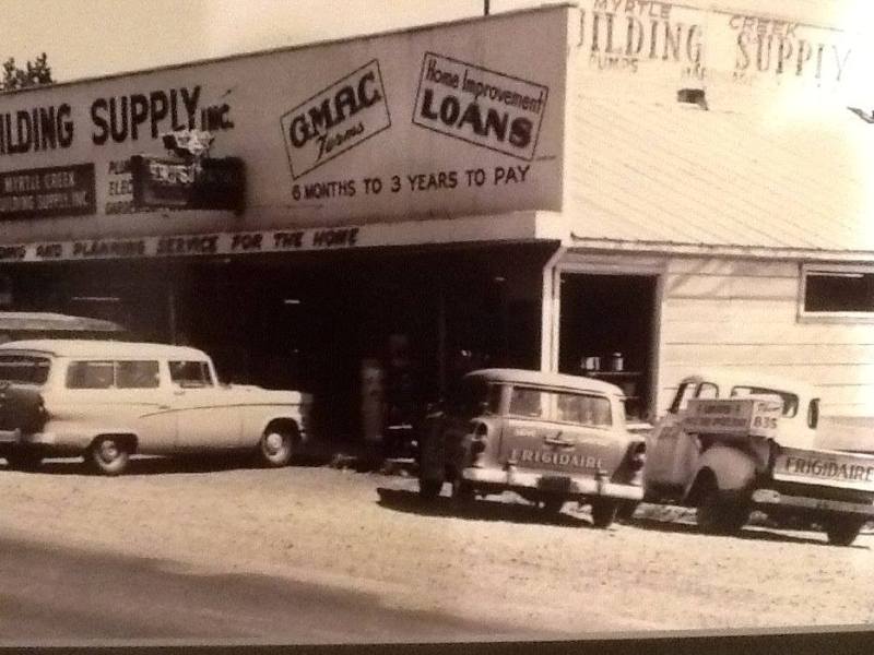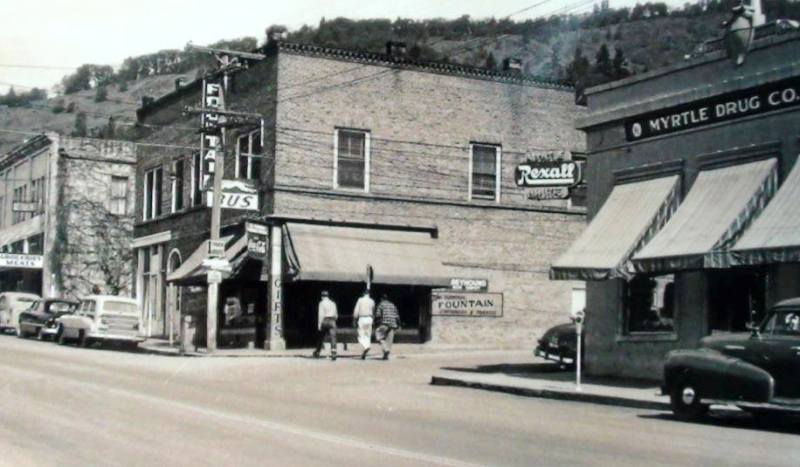 If this town has a claim to fame it is the myrtle wood trees which line the creeks in the area. The beautiful white myrtle wood is turned and carved into every form imaginable that a tourist might buy. Allen (your host) was raised here after being imported from Fort Leonard Wood, Missouri, and survived. This was logging country after world war II, but like so many other places the loggers just stripped the forests without much thought for tomorrow. In the 60's and 70's the mills died. When I-5 came through the engineers chose to put the freeway on the opposite side of the river. That was in the 1950's and the population was about 1800 people. With a population now of about 3100 the town shows some signs of life. It is still hard to find a job there, but the town boasts a new golf course and a very nice downtown park on the site of the old plywood mill. Main street is a classic American strip with a couple of pretty good antique stores. The chamber of commerce has a very nice video of Myrtle Creek. It almost makes me want to move back. Ed Cadman recently sent me some photos of the demolition of the Myrtle Creek High School gym in 2007. Also I lifted a few historical photos of the 1950's from Facebook. They are included.