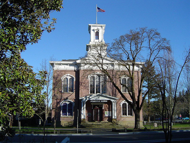 Jacksonville participated in the 1850's gold rush and was the seat of Jackson county until 1927. When the gold ran out and the railroad bypassed town the place was frozen in time. The old buildings were preserved as they were and now they form a national historic site.