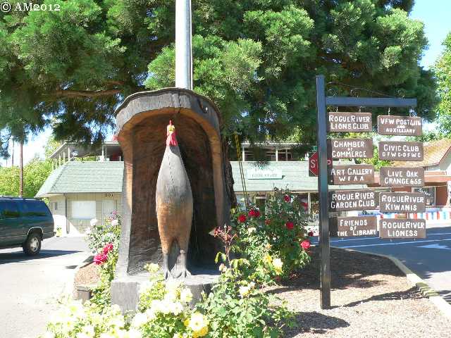 Rogue River is a likeable little town with convenient access across the storied Rogue river to Interstate-5. The downtown is maintained with civic pride having parks and flower beds and art everywhere. Rogue River, the city, is overshadowed by Rogue River, the river. Just Google the name and you will see what I mean! As is common in small towns, the downtown merchants are muli-taskers. We even visited a real estate office with an offering of antiques.