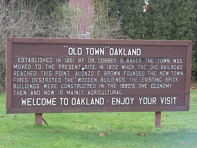 Talk about being bypassed when the freeway came through! Oakland barely got an exit and the hiway department tries every few years to close that. You will, nonetheless, want to stop in Oakland. Coming in from the north you will cross an old one lane bridge with a traffic light. Its classic main street features Tolly's, the grandest restored soda fountain and restaurant that I know of. Tolly's has had a rough time the last few years but things are now looking up (Aug, 2018). When the original Tollefson died the place sold and the new owners were not successful. Over the next few years bankruptcy, caretaker owners and closures plagued the place. Now the establishment is re-opened under second generation ownership by owners who care and are capable operators. The town was built in 1851 but had to be moved in 1872 to accommodate a railroad. Fire plagued the wooden structures of the new town. Most of the brick buildings on main street were erected in the 1890's. The town also has a wealth of Victorian period homes. A couple of years ago (1998)our friend Hank Jarboe who operates Jarboe's Gill in Canby (now defunct) bought a commercial building in Oakland for only $100,000. He claims it has an antique bar that came around the horn. As he tells the story he could sell the bar for most of what he paid for the building. Our guess is that he wishes he had his money back!